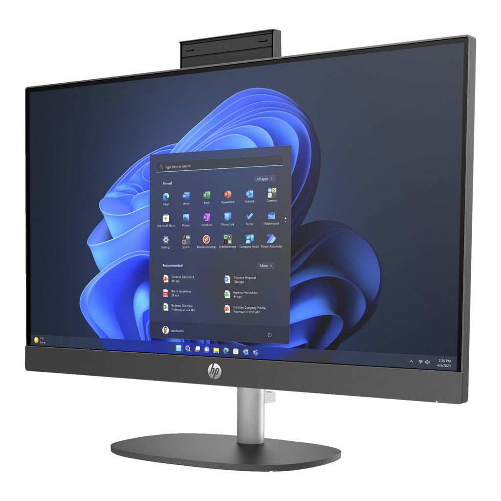 The HP ProOne 240 All-in-One provides power and features for productivity and business-grade performance. A great value, with models up to an Intel Core Ultra 7 processor which features a neural processing unit (NPU) for AI a 23.8-inch Full HD display, video-enhancement features in a sleek, stylish design, and tiltable camera.
