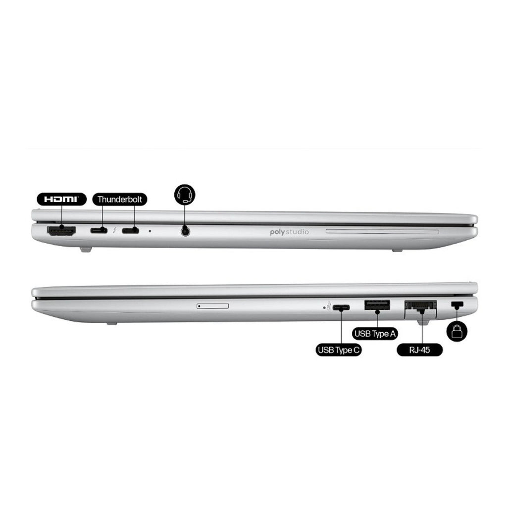 - 2x Thunderbolt 4 with USB Type-C 40Gbps signaling rate (USB Power Delivery, DisplayPort 2.1, HP Sleep and Charge)