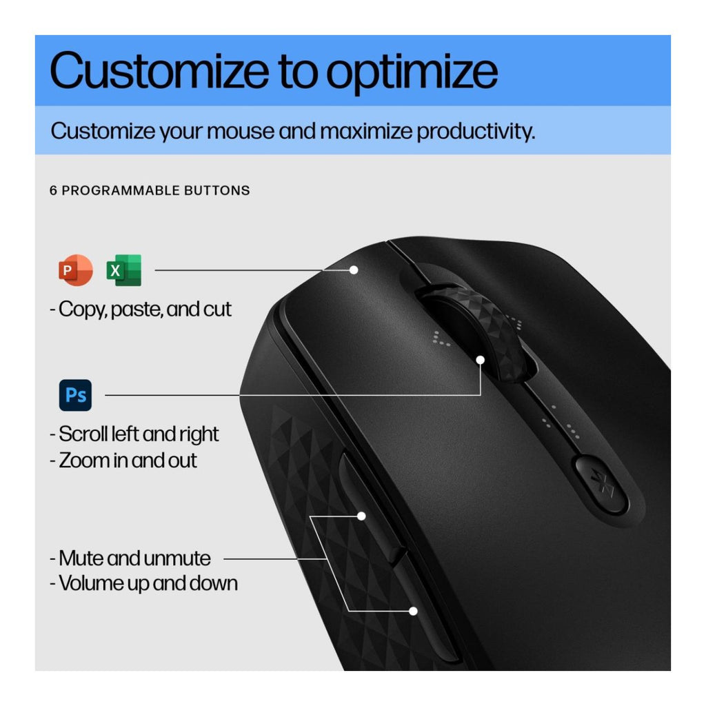 Customize your mouse to how you work best. Simply download the HP Accessory Center app and you’ll be able to program six buttons to your workflow and maximize productivity. A 4-D tilt wheel delivers effortless horizontal scrolling.